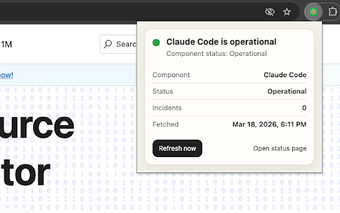 Claude Status is een handige Chrome-extensie die gebruikers in staat stelt om de actuele status van Claude-diensten te volgen. Met deze tool kunnen gebruikers snel zien of de diensten operationeel zijn zonder handmatig statuspagina's te hoeven controleren. De extensie biedt een visuele statusindicator in de browserwerkbalk, die de status van de diensten aangeeft met kleuren: groen voor operationeel, geel voor waarschuwing en rood voor storing.